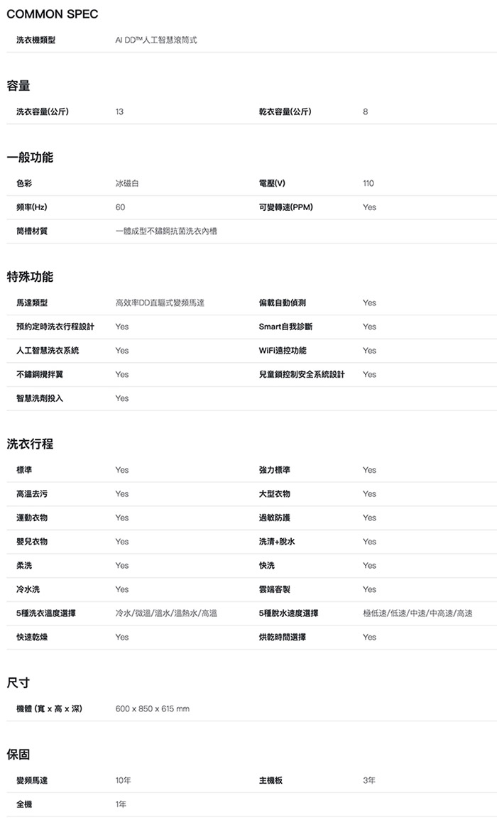 • -AI DD™ 直驅變頻馬達10年保固:提升洗淨力、更護衣