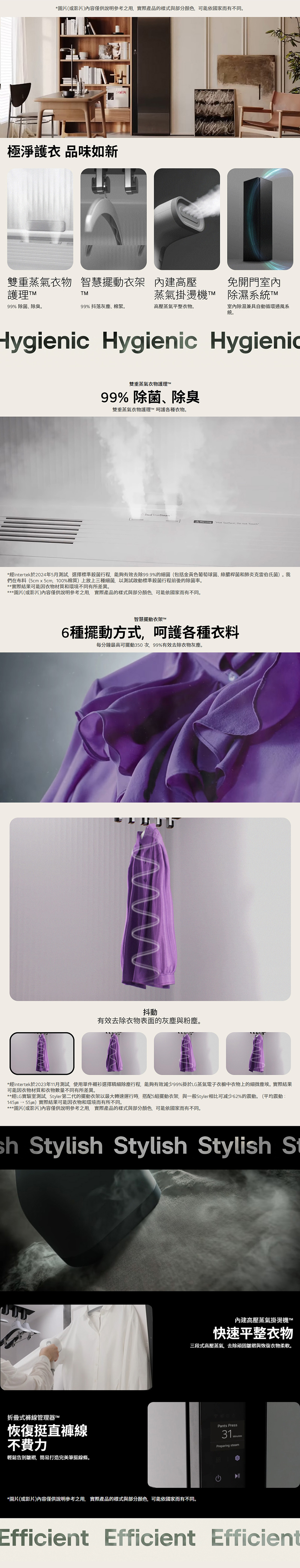 • -AI 偵測:智慧擺動衣架 抖落灰塵同時呵護各種衣料
