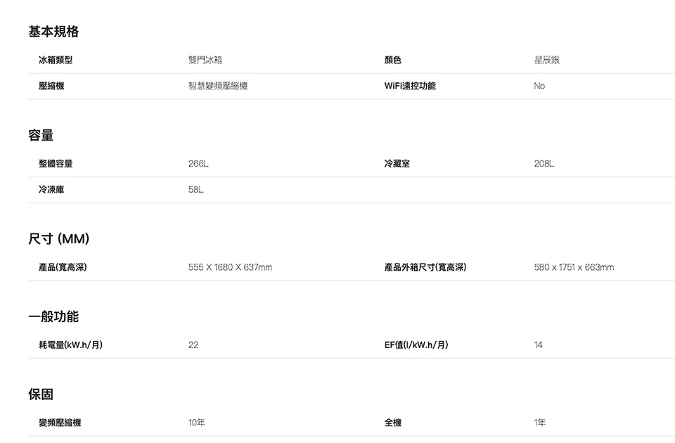 • -冷藏208/冷凍58公升