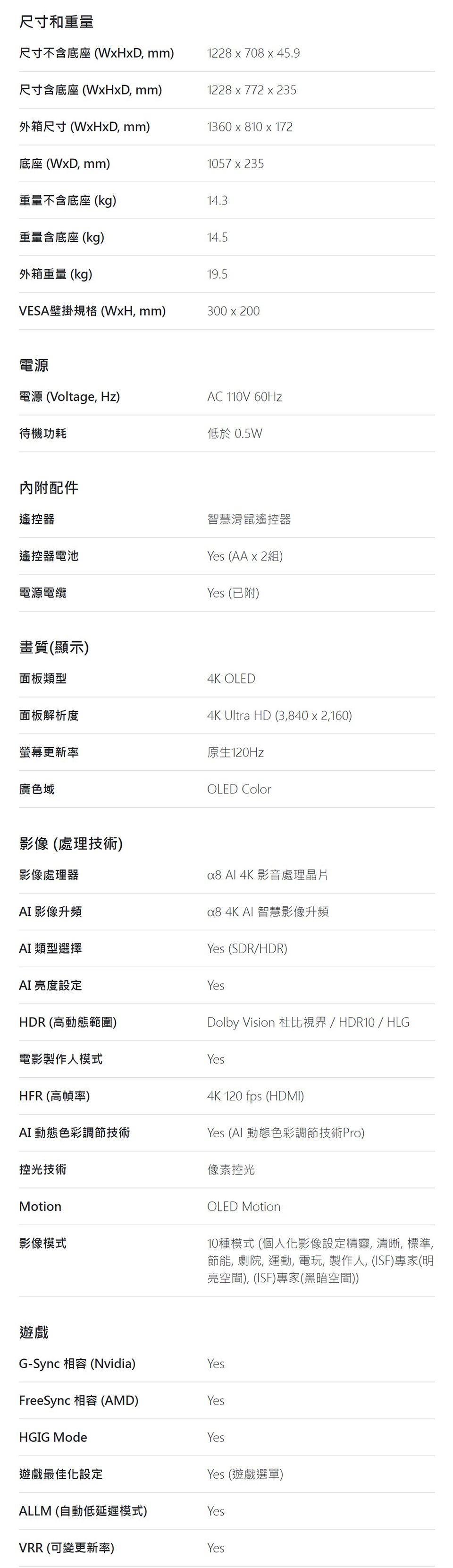 • -支援 VRR、G-Sync 和 Freesync,具備 HDMI 2.1 四組,讓您享受流暢電玩