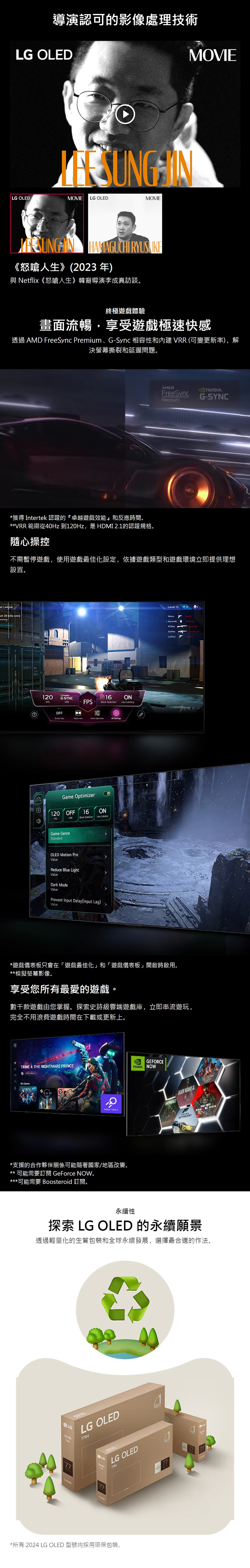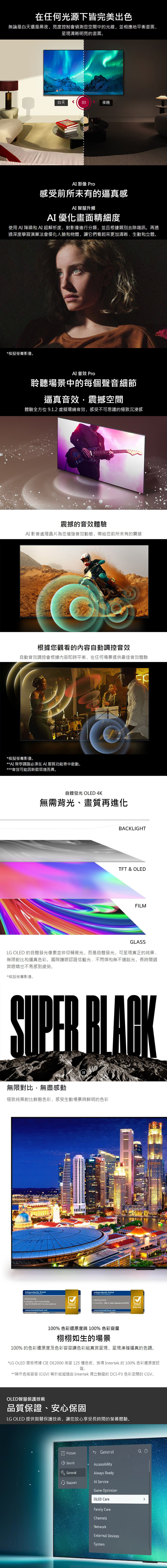 • -LG OLED 自體發光科技,展現極致純黑無限對比真實色彩,感受生動場景與鮮明的色彩