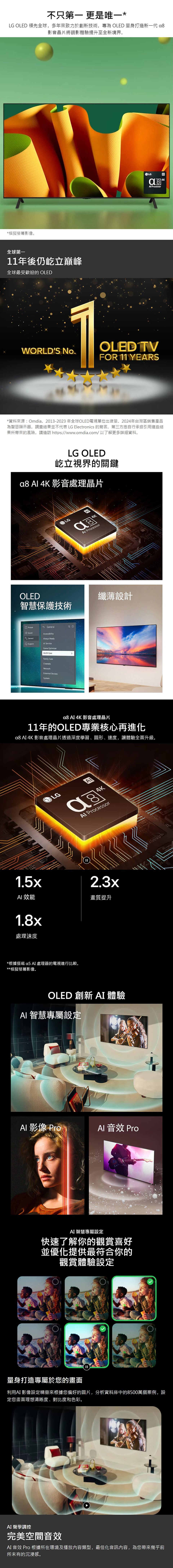 • -不只第一 更是唯一 | LG OLED 連續11年銷售 NO.1 & 多項創新技術唯一*