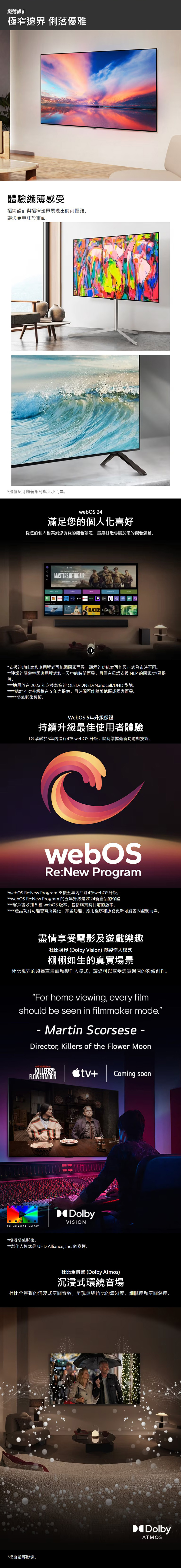 • -支援杜比全景聲 (Dolby Atmos) 沉浸式空間音效,及杜比視界 (Dolby Vision) 帶來栩栩如生的真實畫面