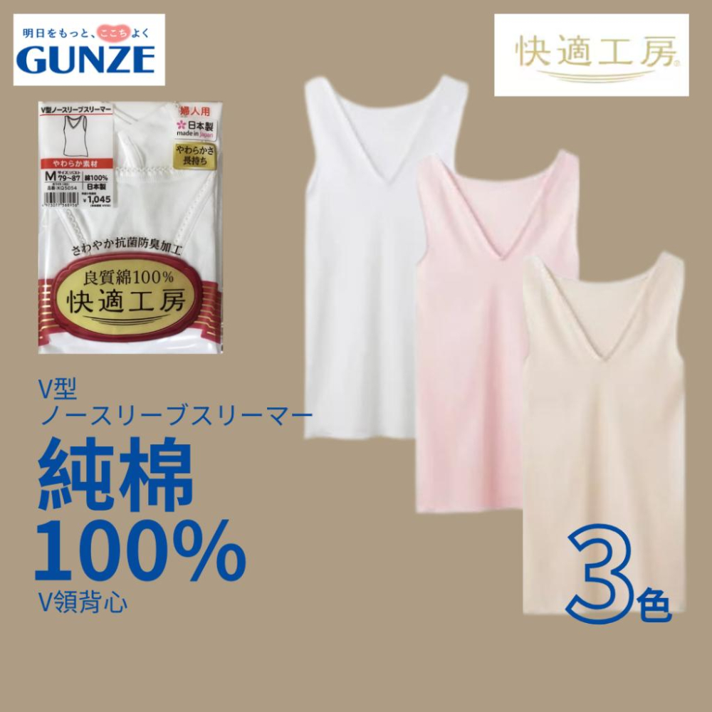 (特開賣場勿下單)日本製 Gunze 郡是 純綿100% 女背心 女內衣 V領背心 居家背心-KQ5054 白色M