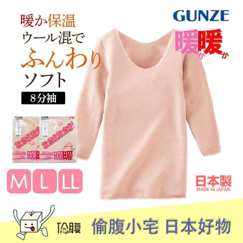 商品名:日本製 GUNZE 發繞保暖衛生衣 暖暖 刷毛裹起毛混羊毛 8分袖上衣 DDL246A 型號:DDL246A(B)