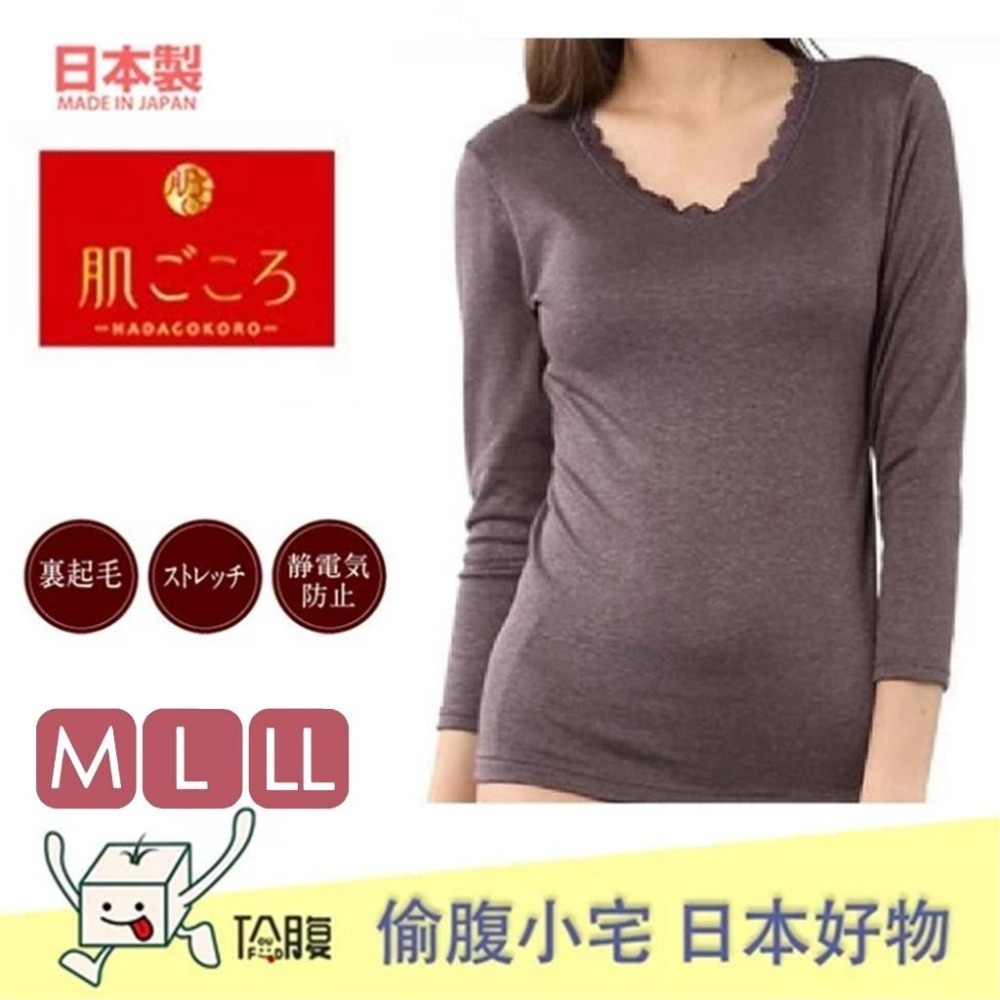 日本製 AS東洋紡織 女保暖衣 8分袖發熱衣 吸濕發熱 裏起毛 東洋紡 抗靜電 吸溼發熱 蕾絲領口 冬季保暖衣