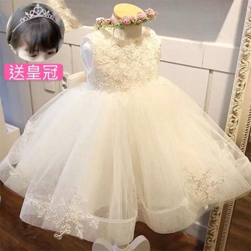 預購女童禮服蕾絲公主裙 女童蓬蓬裙婚禮花童禮服 幼兒園 畢業禮服 小洋裝白色禮服 婚紗送皇冠週歲小洋裝紗裙 鋼琴演奏會