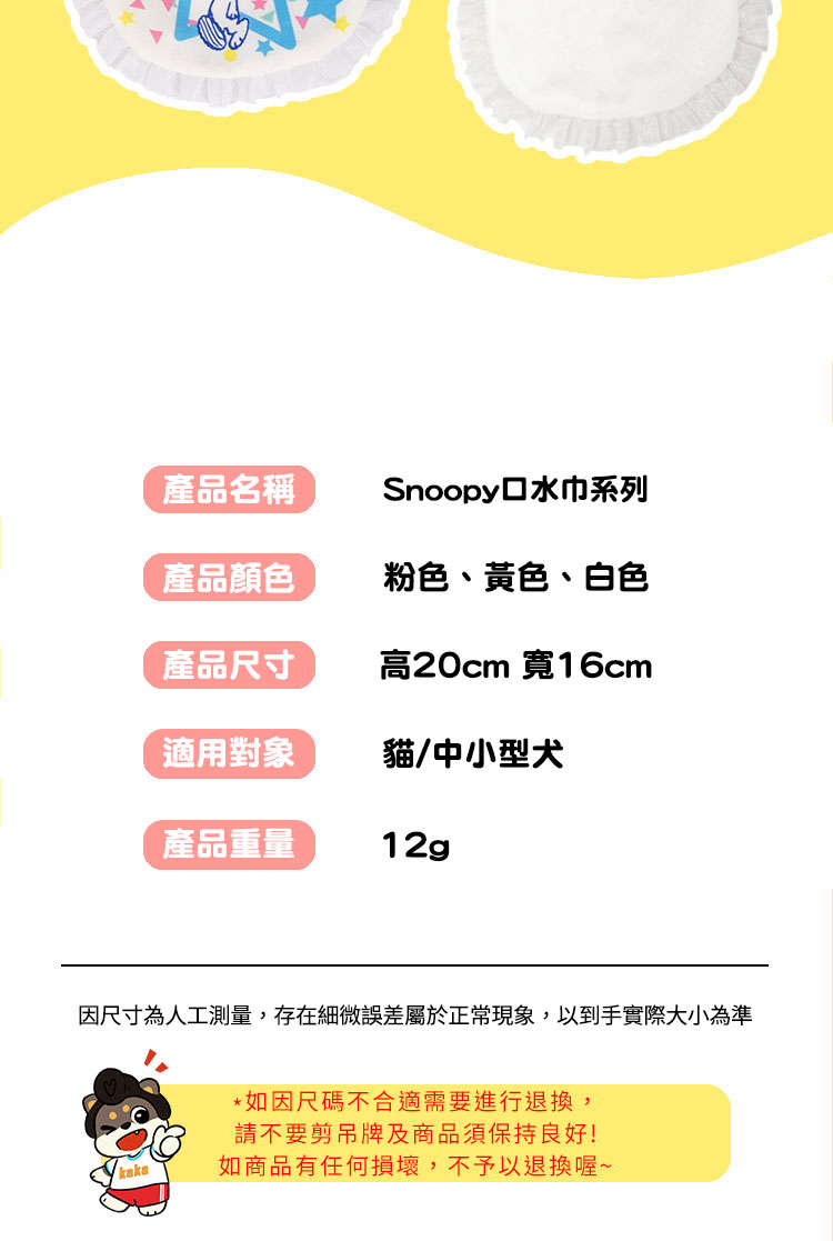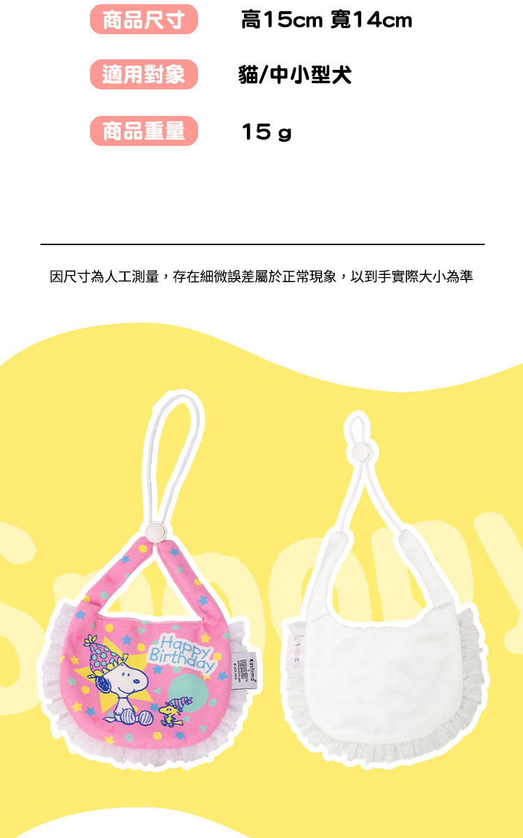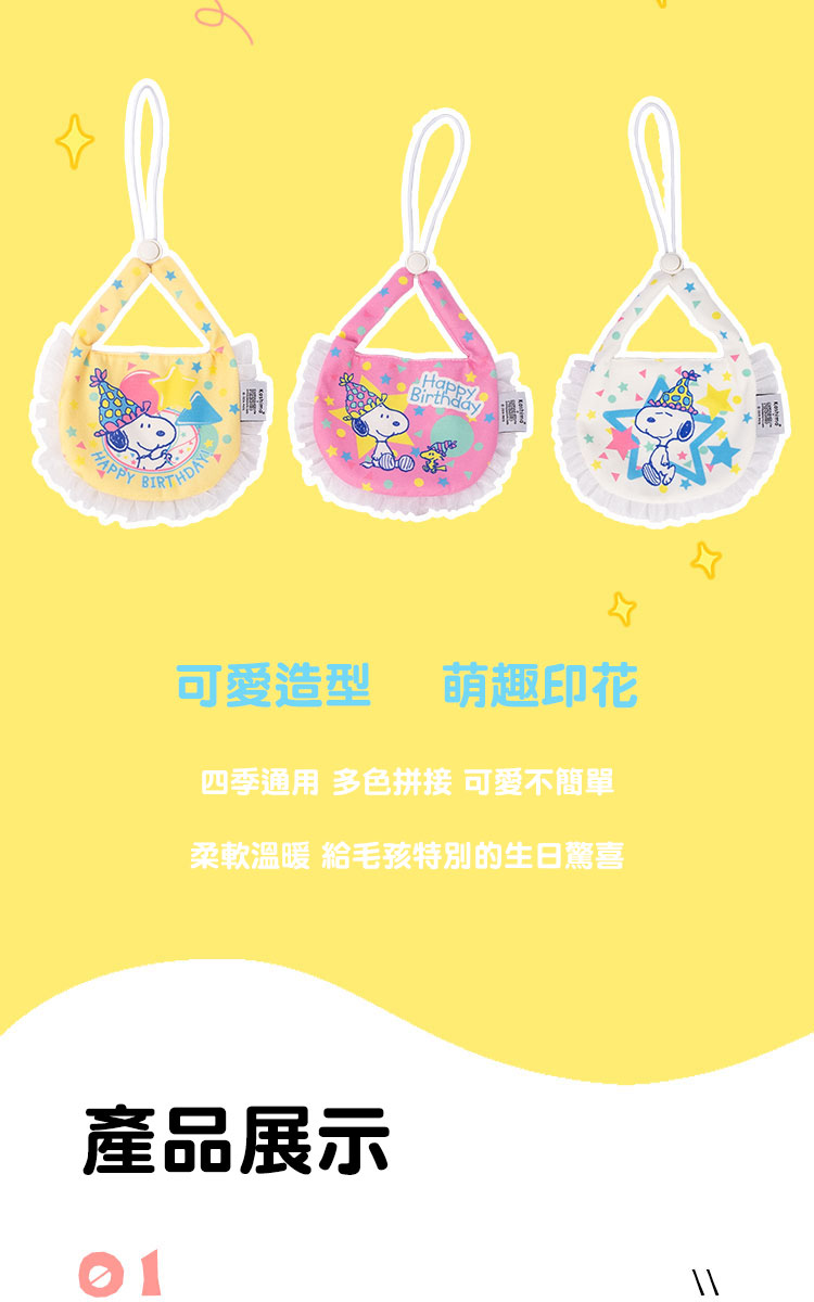 品名:Snoopy寵物生日口水巾 白/粉/黃