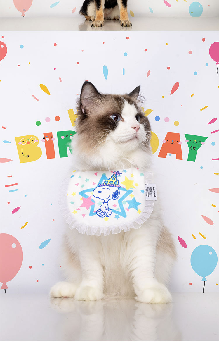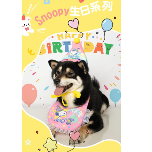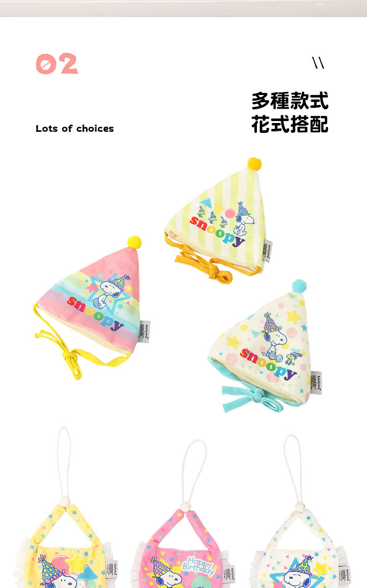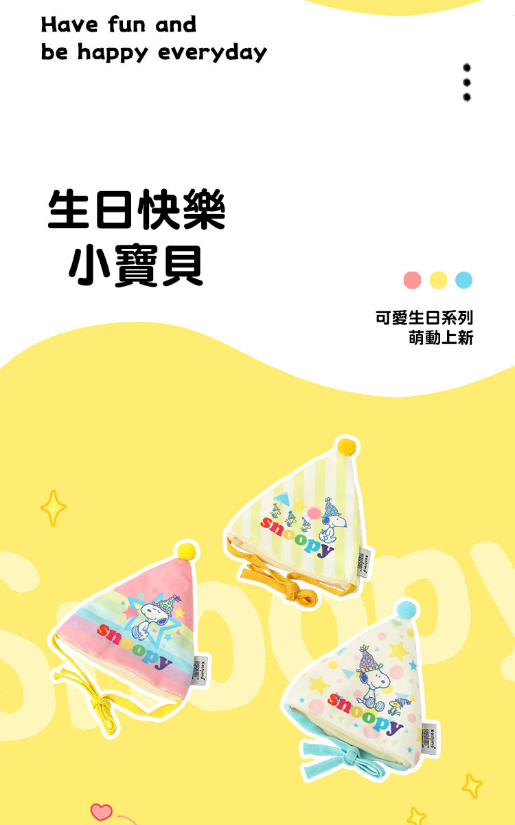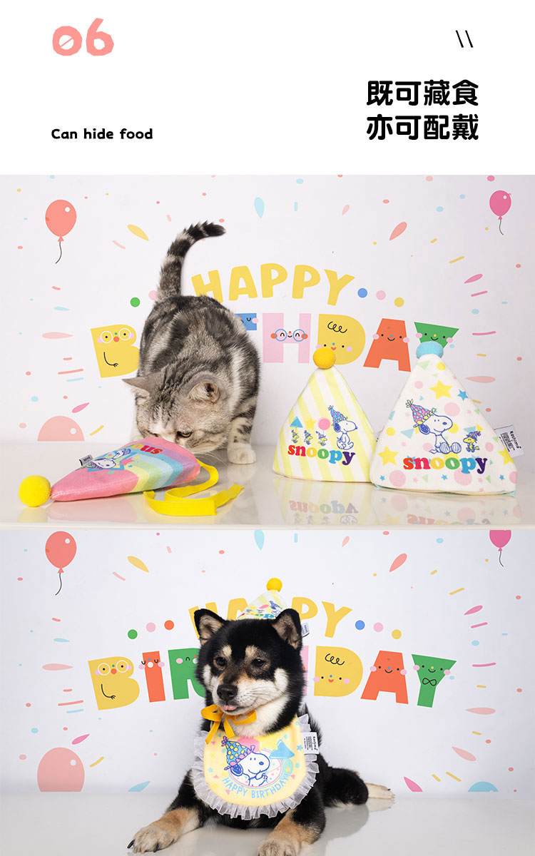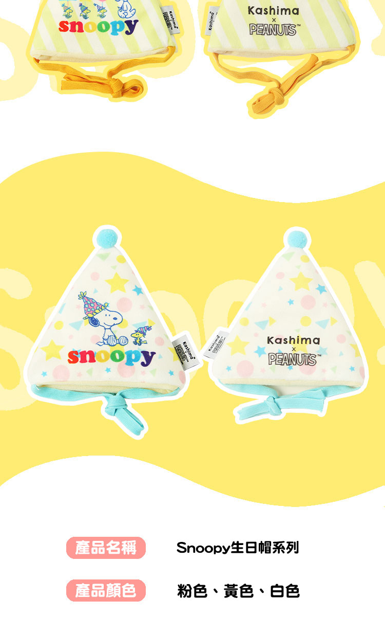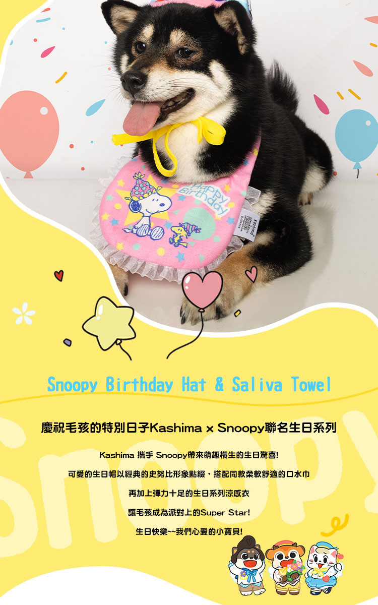 【Kashima X Snoopy】史努比寵物生日組(帽子+口水巾)可以是玩具也可以是服飾 綁繩抽繩設計 含響紙 貓狗