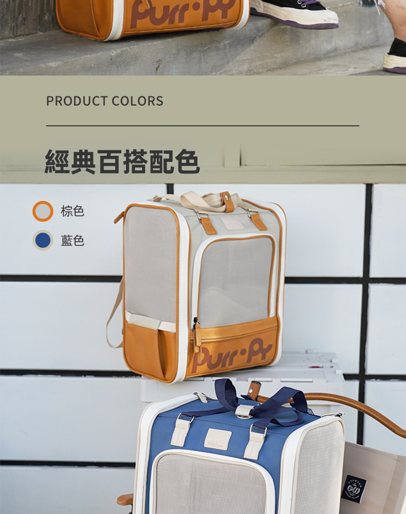Purrpy寵物外出小雅包 後背包 手提 肩背(正面開口/三側雙層網窗)
