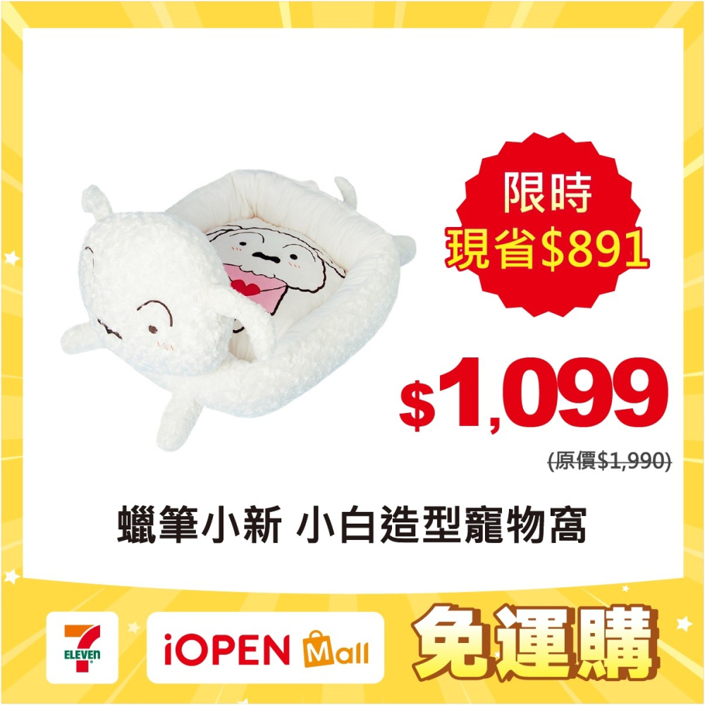 【7-ELEVEN門市團購】 Kashima X 蠟筆小新小白造型寵物窩 現貨 可拆洗 附軟墊 保暖 貓窩狗窩