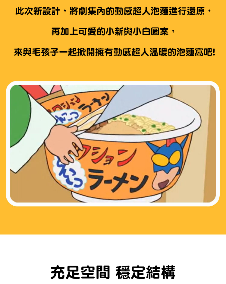 【Kashima X 蠟筆小新】動感超人泡麵寵物窩 台灣唯一總代理 現貨 可拆洗 附軟墊 保暖 貓窩 狗窩
