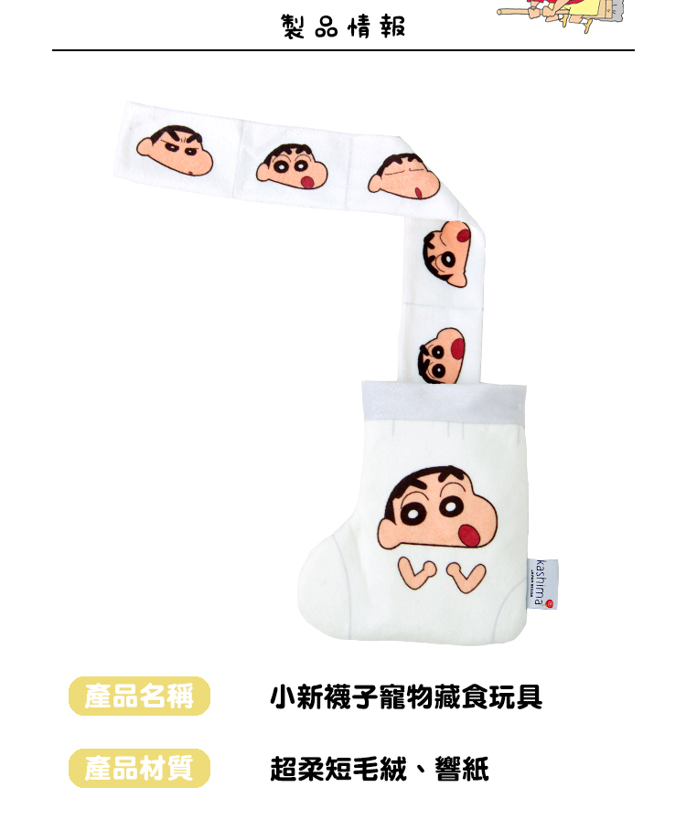 【Kashima X 蠟筆小新】小新襪子寵物藏食玩具 台灣唯一總代理 獨家正版授權製作