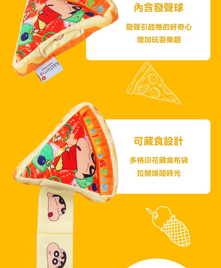 【Kashima X 蠟筆小新】小新披薩寵物玩具 台灣唯一總代理 可藏食 發聲玩具 響紙 貓狗玩具 獨家正版 現貨