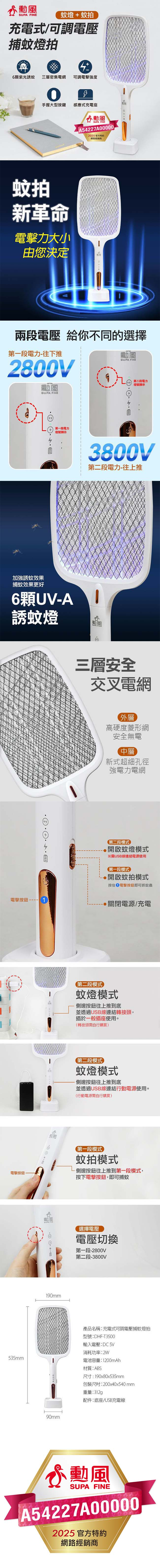 勳風 充電式可調電壓捕蚊燈拍 DHF-T3500
