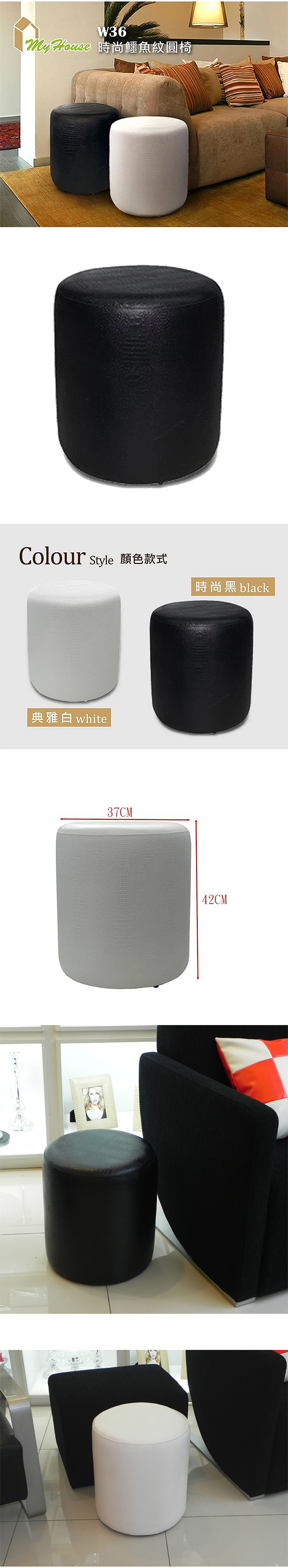 DOLEE 時尚仿鱷魚小圓椅37x42cm(無收納)W36 台灣製 時尚黑