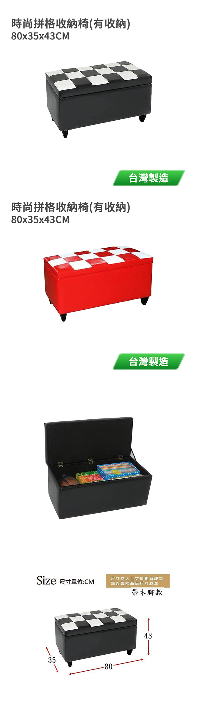DOLEE 時尚拼格收納椅(有收納)-帶木腳款 台灣製