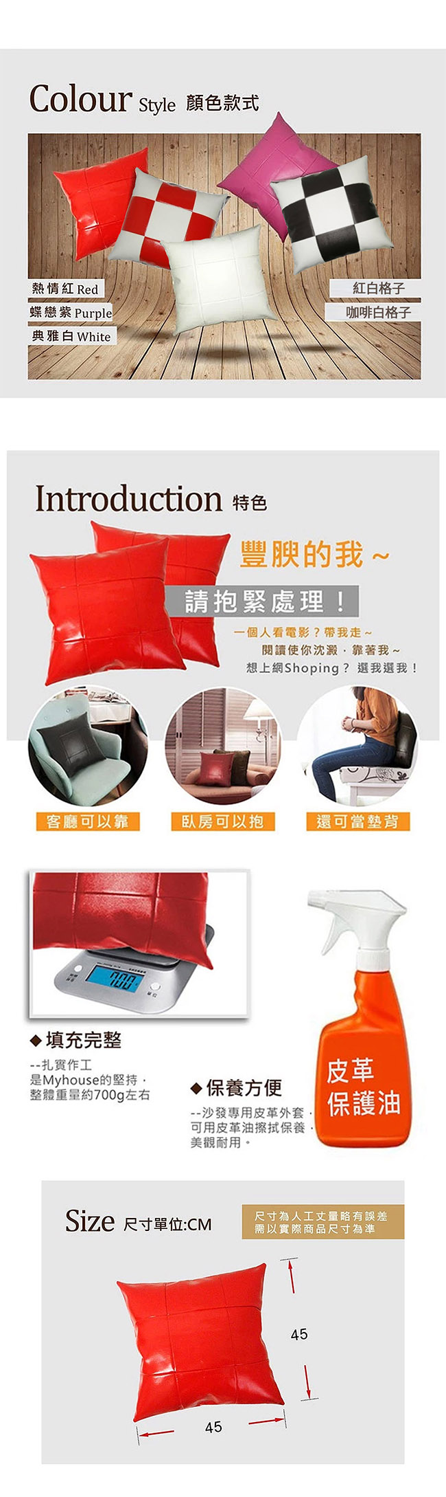 顏色:熱情紅、典雅白、蝶戀紫、紅白格子、咖啡白格子