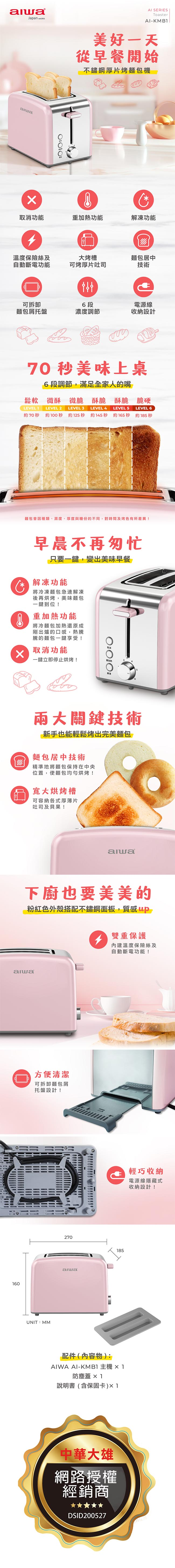 AIWA愛華 六段濃淡調節烤麵包機 AI-KMB1