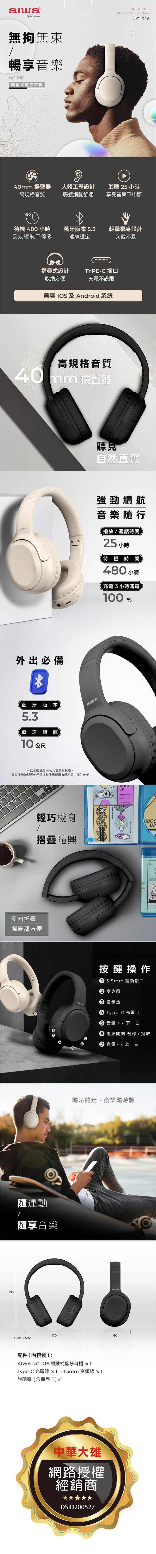 AIWA愛華 折疊頭戴式藍牙耳機 NC-R16