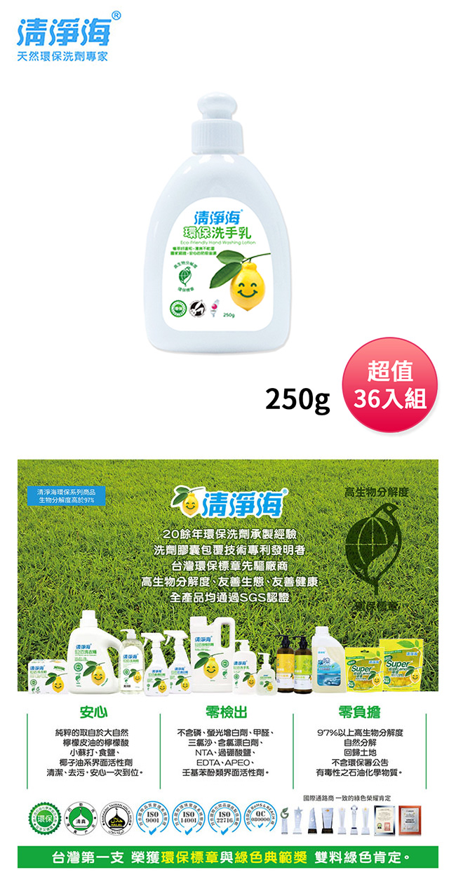 清淨海 環保洗手乳250g 超值家庭號36入組