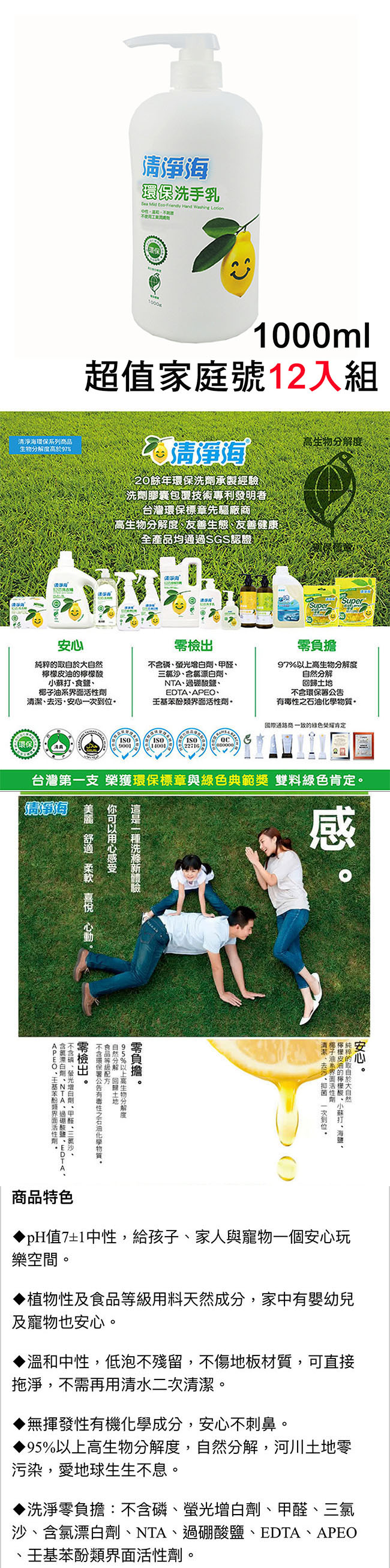 清淨海 中性溫和環保洗手乳1000ml 超值家庭號12入組