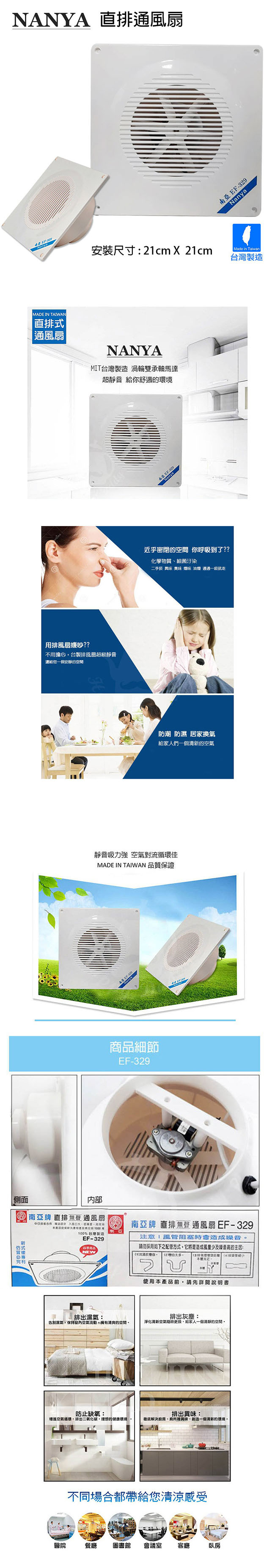 NANYA南亞牌 浴室專用直排通風扇/排風扇/換氣扇(110V) 台灣製 EF-329