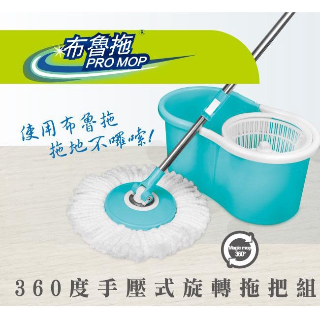 布魯拖 手壓式旋轉拖把組(把桿1+脫水桶1+布盤2) ZPT-A06