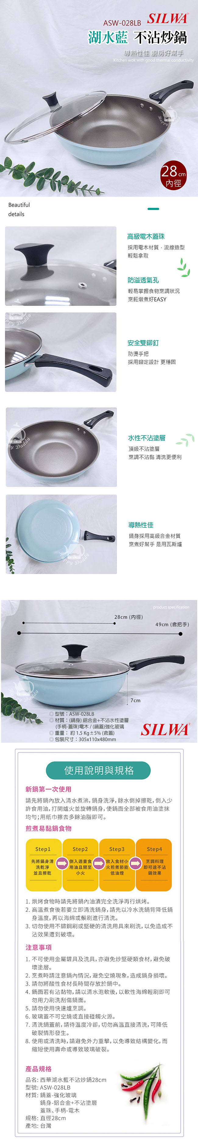 西華 28CM不沾炒鍋含蓋(適用瓦斯爐)台灣製造 湖水藍 ASW-028LB