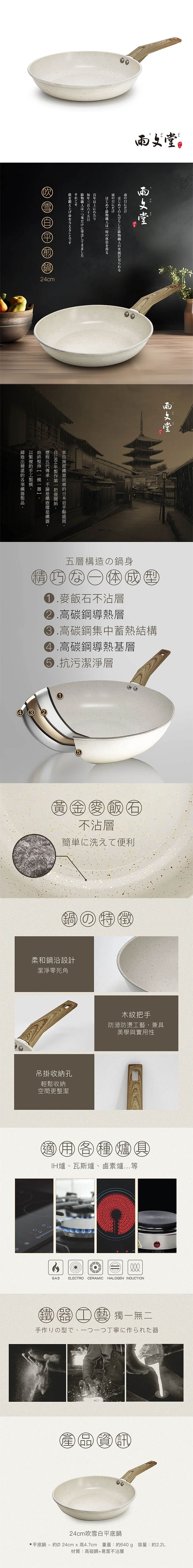 雨文堂UBUNDOU 麥飯石吹雪白不沾平底鍋24cm(2.2L)