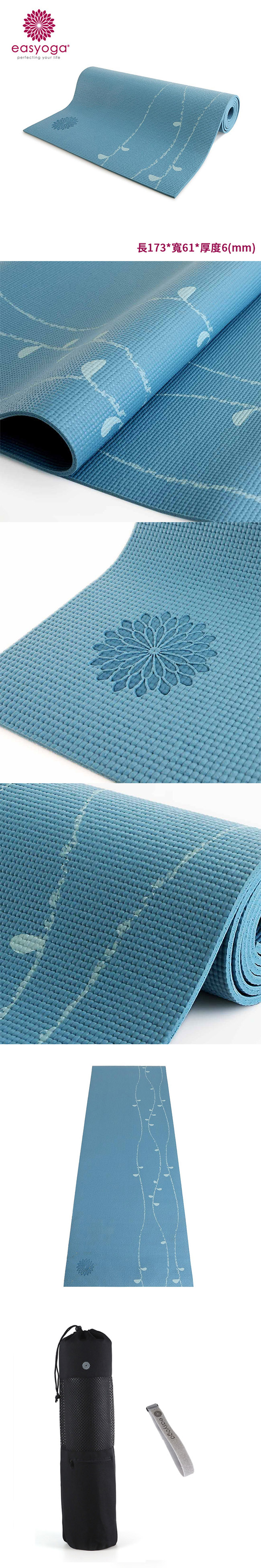 EASYOGA 瑜珈花草墊-藍色(附收納繩/專屬背袋)