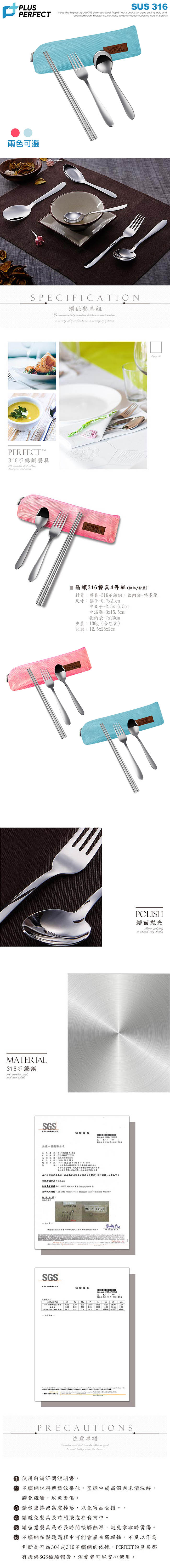 理想PERFECT 頂級晶鑽316餐具4件組(筷+匙+叉+袋) IKH_86304 台灣製