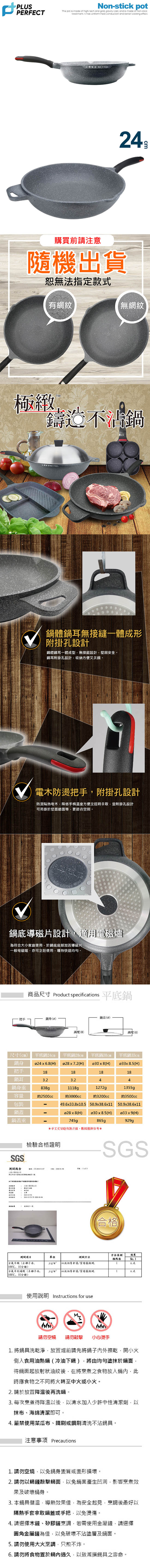 理想PERFECT 極緻鑄造不沾平底鍋 24cm無蓋 IKH_22024_1 台灣製
