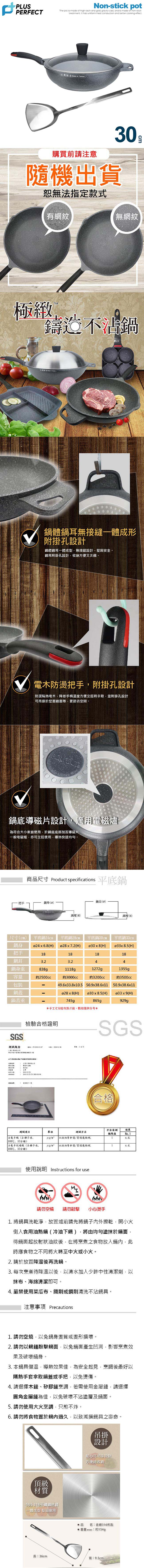 理想PERFECT 極緻鑄造不沾平底鍋 30cm附蓋(附316煎匙) IKH_22030 台灣製