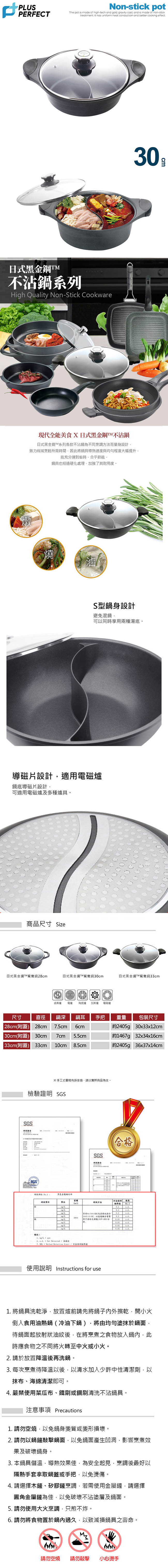 理想PERFECT 日式黑金鋼鴛鴦鍋 30cm附蓋 IKH_35030 台灣製