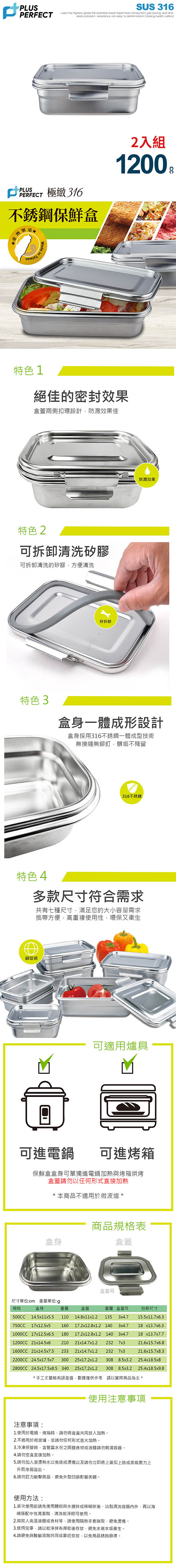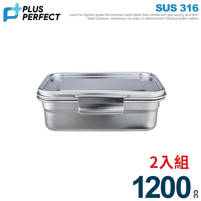 理想PERFECT 極緻316不鏽鋼保鮮盒 1200cc(長21cm) SJ-9030120 台灣製 超值二入