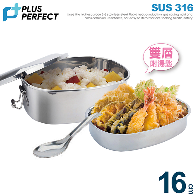 理想PERFECT 極緻316方形雙層便當盒 16cm(約800cc)附湯匙 KH_55116_2 台灣製