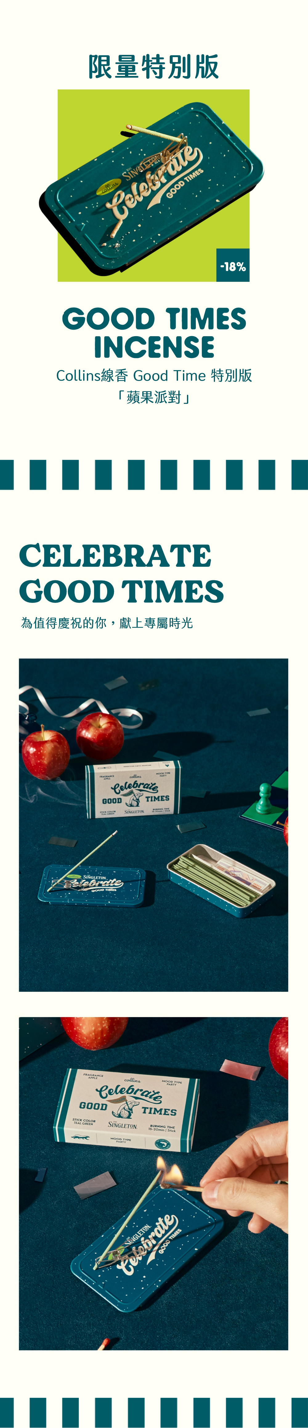 【Collins 限定款】鐵盒線香70支 - GOOD TIMES #蘋果派對