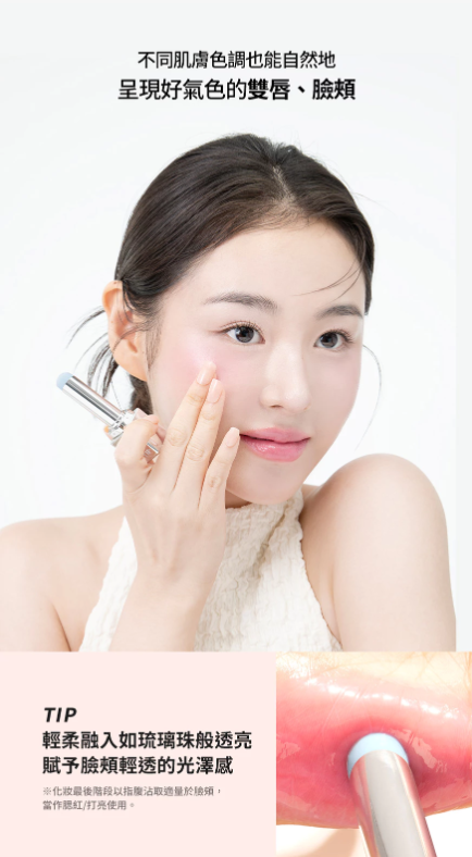 可同時塗抹於臉頰做腮紅使用