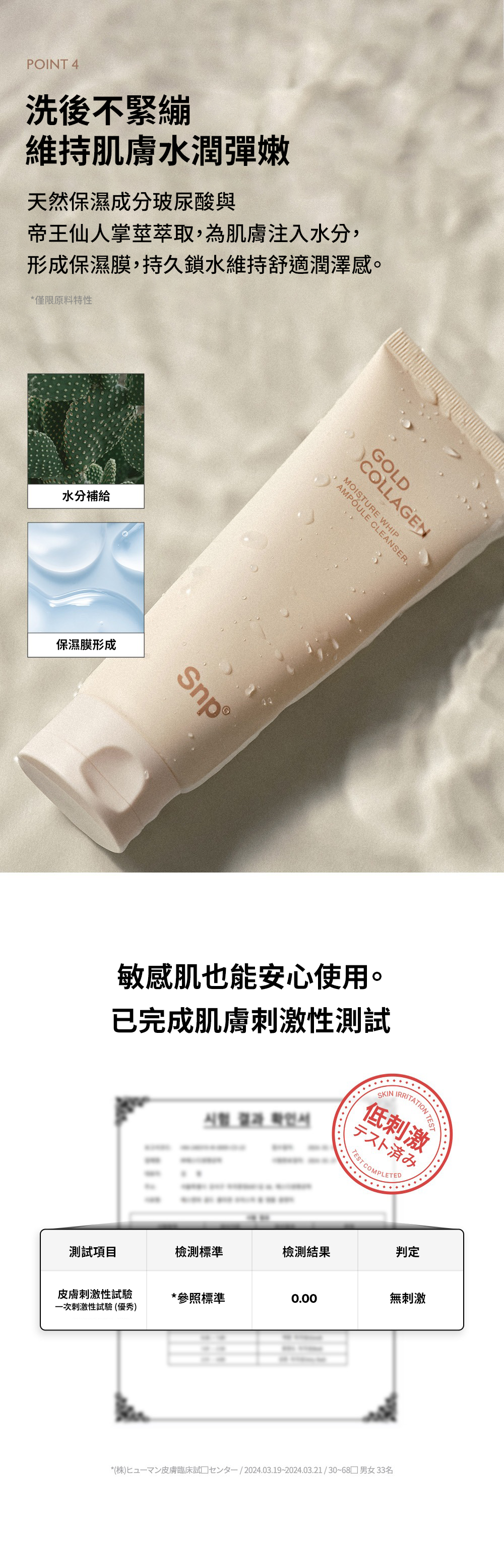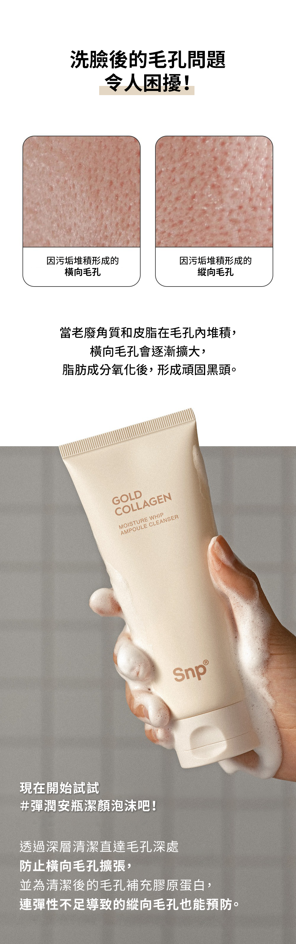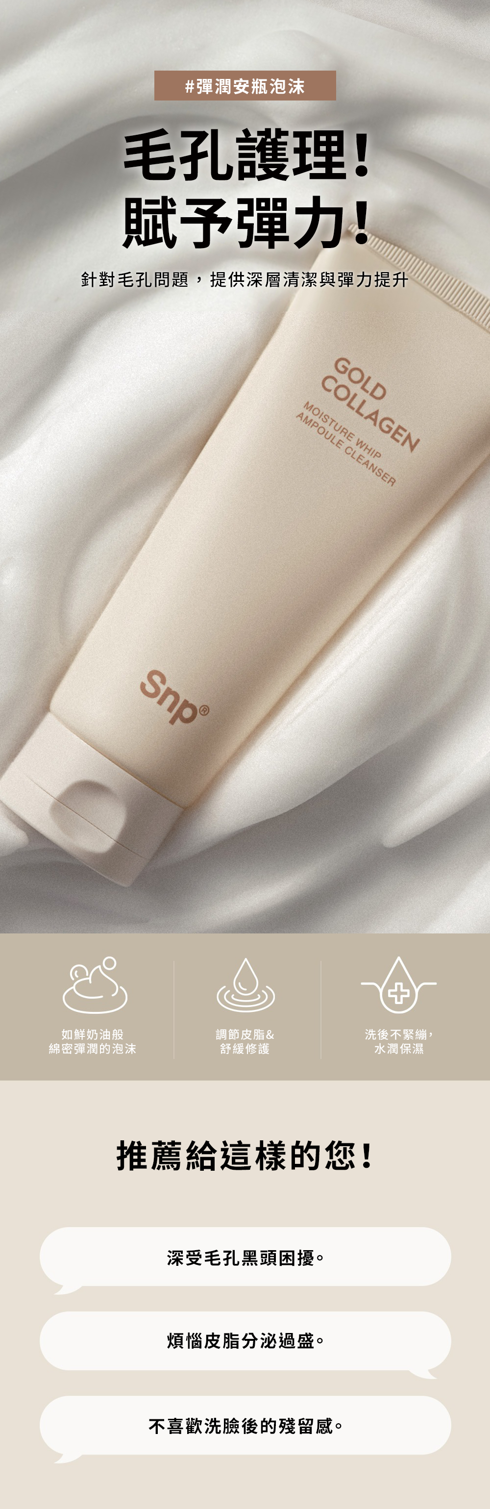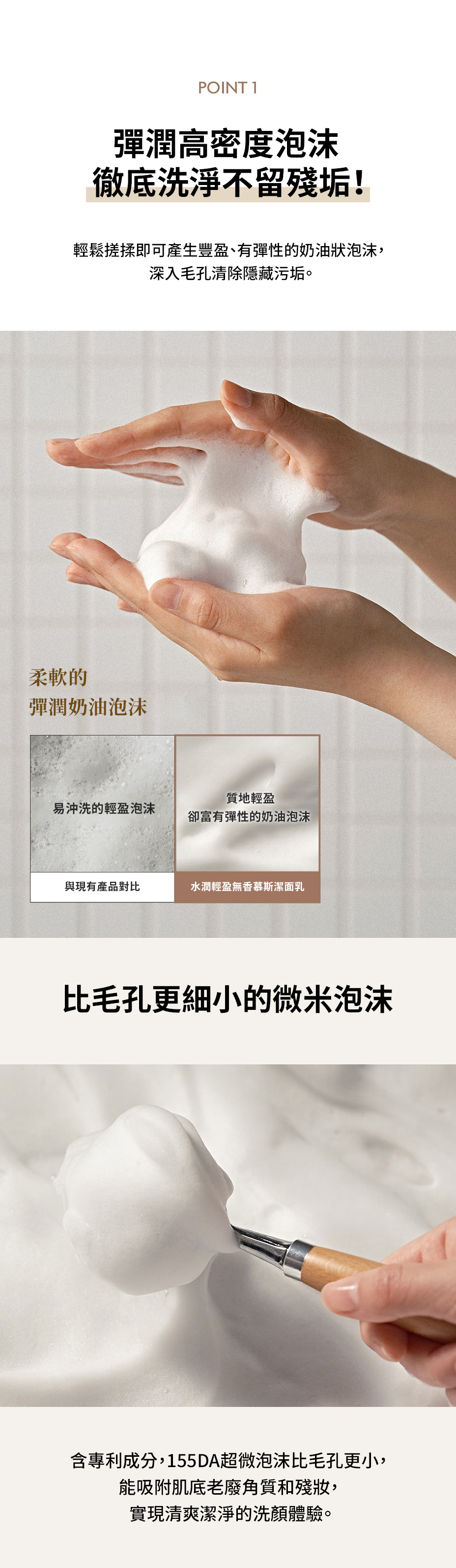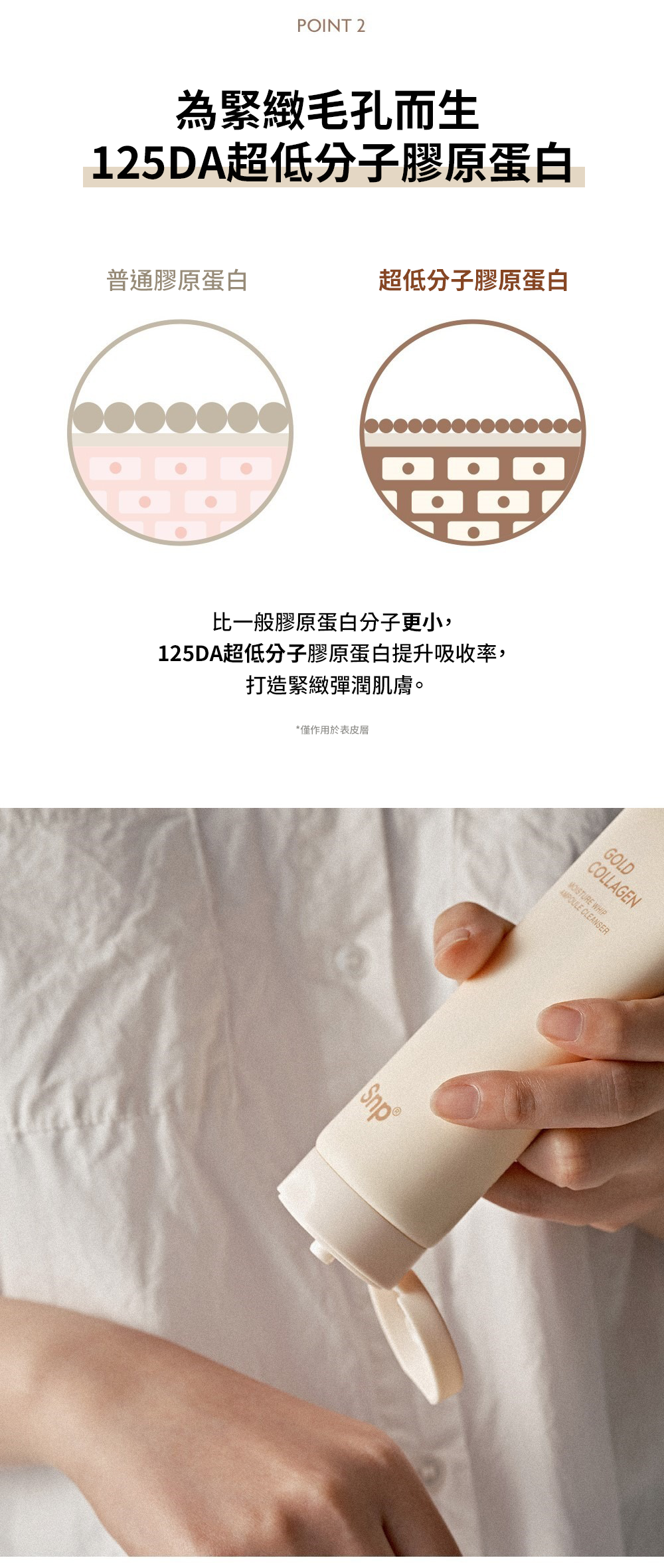 採用 125 Da 超低分子膠原蛋白,配合專利微泡科技,泡沫細緻至小於毛孔直徑,深入清潔但不緊繃