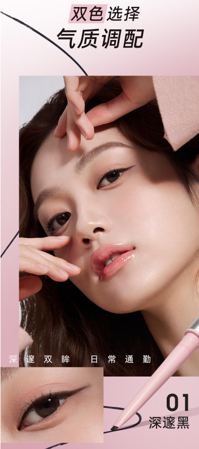 2. 描繪技巧:從眼頭/中段細筆勾線,向眼尾加強;可先輕輕點→拉線,再補實線。用細的筆芯可以畫內眼線/下眼線或暈染過渡。