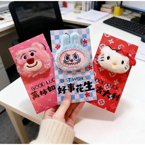 • 軟綿綿的療癒感:紅包上的絨毛公仔摸起來軟Q彈嫩,小朋友拿到就會抱在懷裡搓個不停,根本不想放下。