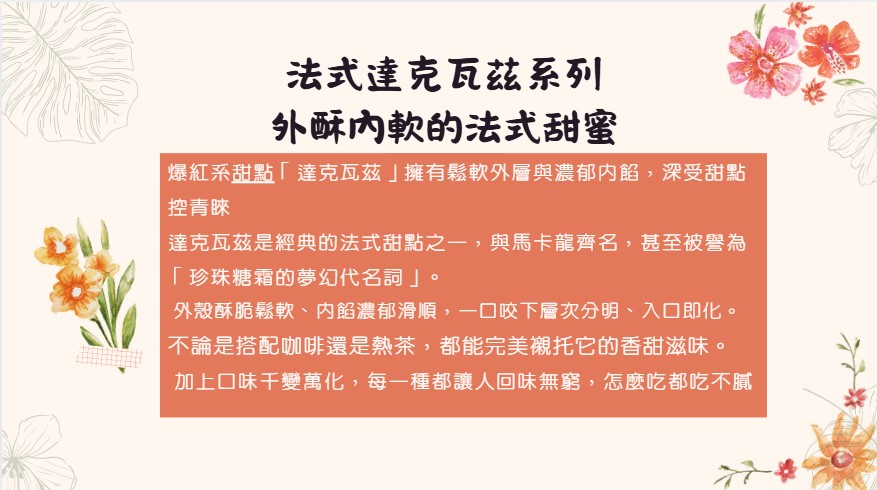 結合甜點與經典台味,從手工達克瓦茲蛋糕、香濃餅乾,