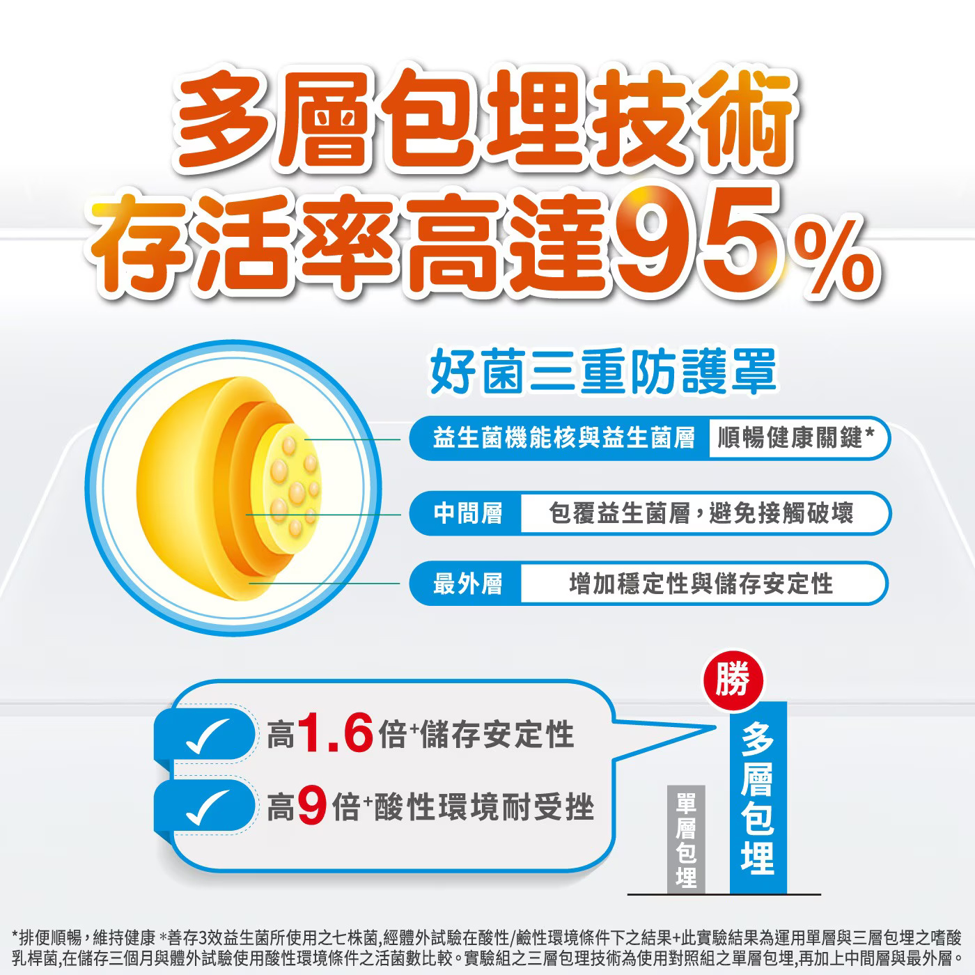 一包多機能,促進新陳代謝,青春美麗,調整體質,每包含有50億活菌,同時能提升保護力(註3)