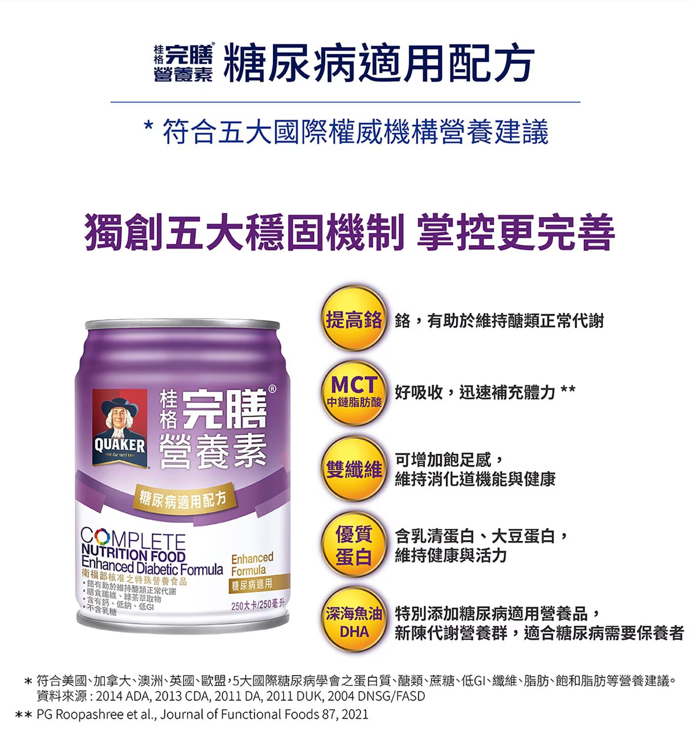 內容量/入數桂格完膳營養素糖尿病適用配方 (液體):250毫升 X 28罐