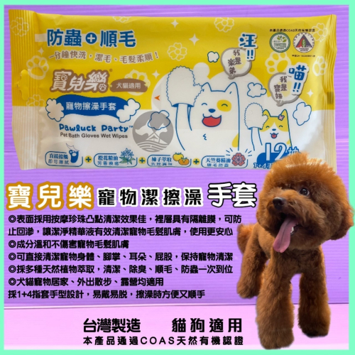 🍀小福袋🍀寶兒樂 寵物 潔擦澡手套(濕式) 12抽*1包 採1+4指套手型設計 免洗 乾洗澡 清潔手套 犬 狗 貓