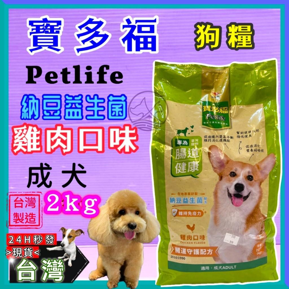 ☘️小福袋☘️統一 寶多福 美食犬餐 成犬 專用 雞肉 口味 2kg/包 添加納豆益菌 PETLIFE 台灣製
