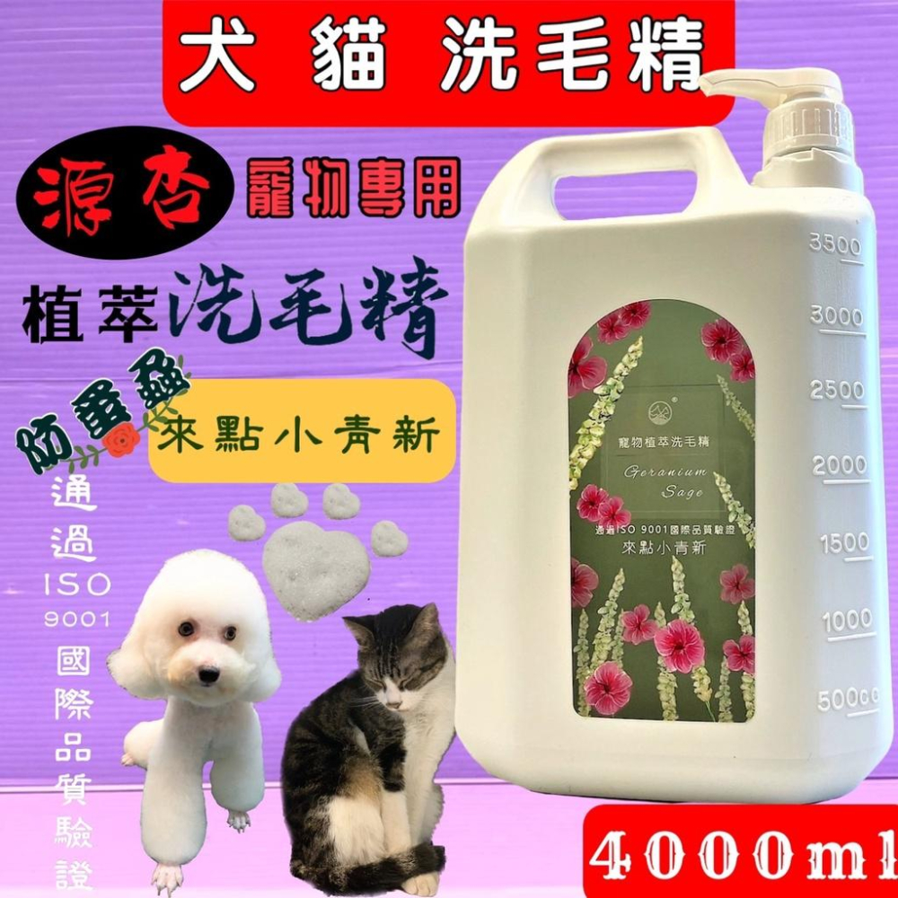 超大桶✪小福袋✪源杏 來點小青新 4000ml/瓶 防蚤蝨系列 洗毛精《犬 貓 狗 專用》沐浴露 乳 寵物專用