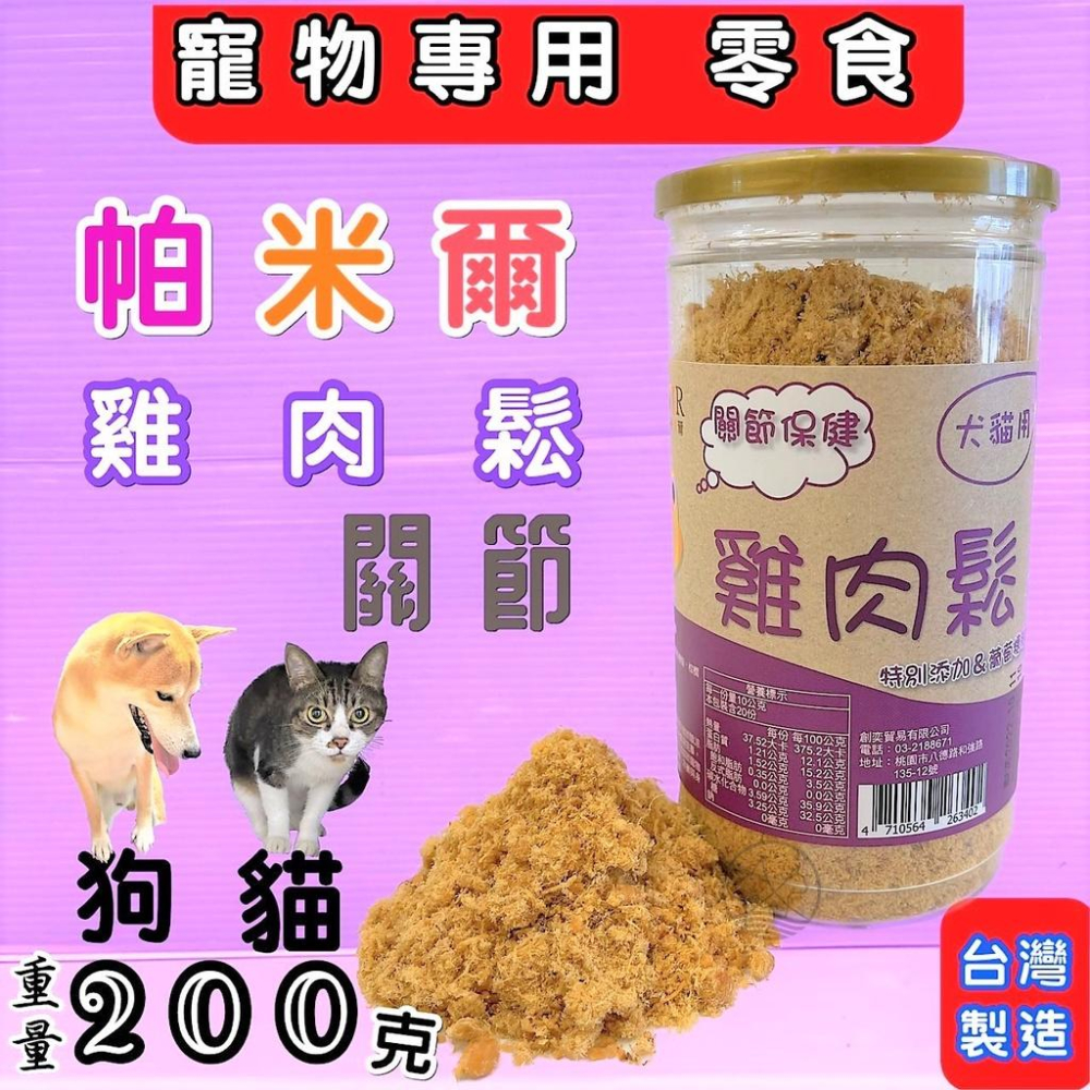✪小福袋✪帕米爾 雞肉鬆➤機能 關節保健 200克/罐➤PARMIR 肉鬆 香濃雞肉鬆 犬 狗 零食 寵物伴飯肉鬆