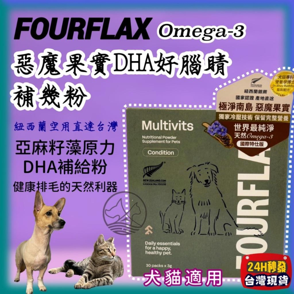 ✪小福袋✪FOURFLAX 紐西蘭 Omega-3 ➤DHA好腦睛粉 隨行包 30包/盒➤ (海藻粉) 犬 狗 貓